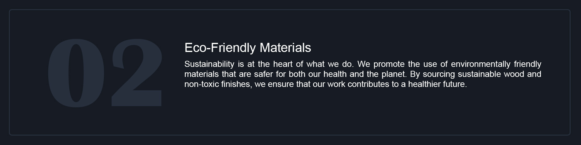 We are dedicated to revolutionizing the carpentry industry in Malaysia by delivering the highest standards of craftsmanship while prioritizing the health of our planet and our customers.
